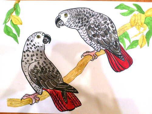 - Акимушкин И. И. "Попугаи" (альбом для раскрашивания), М., "Малыш", 1987 г.