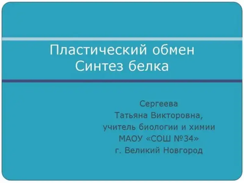 Цели и задачи урока: раскрыть сущность пластического обмена, процесс биосинтеза белка, его основные закономерности; закрепить понятие "обмен веществ", сформировать у учащихся понятие "генетический код" и познакомить их с основными его свойствами; рассмотреть особенности синтеза белков у эукариот.