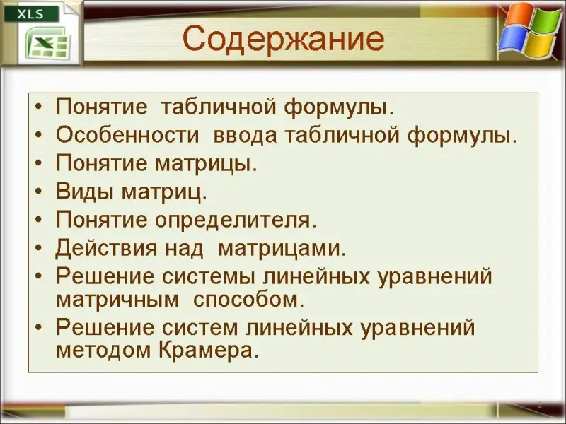На протяжении почти всего курса математики учащиеся изучают различные методы решения уравнений и систем уравнений. Когда школьники изучат методы решения систем уравнений на уроках алгебры, на уроках информатики целесообразно рассмотреть дополнительные, более эффективные, по времени, инструменты для выполнения таких заданий. Данная тема не является сложной для учащихся, но очень трудоемкая для учителя, необходимо делать много записей на доске, фактически учитель весь урок стоит спиной к учащимся. Для оптимизации и эффективности учебной деятельности учителя на уроке была создана презентация, которая может применяться на любом этапе прохождения темы фрагментарно или полностью учителями математики, а особенно полезна учителям информатики из-за ограниченного количества часов по предмету.