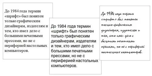 На устройствах с низкой разрешающей способностью (например, на мониторах) текст, набранный шрифтом без засечек, читается легче.