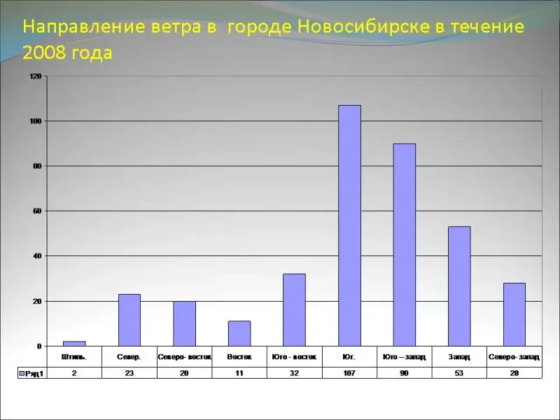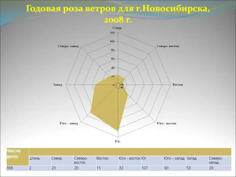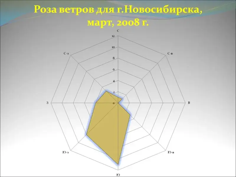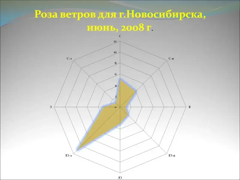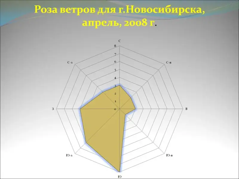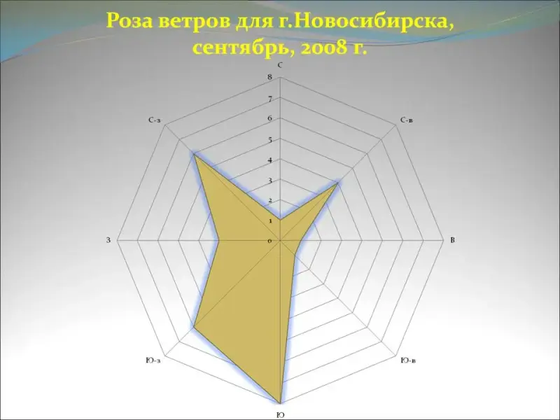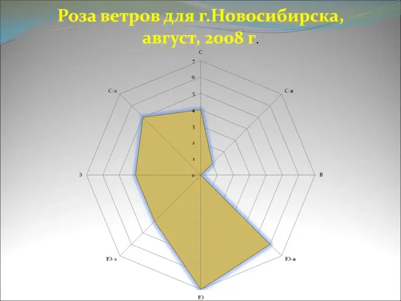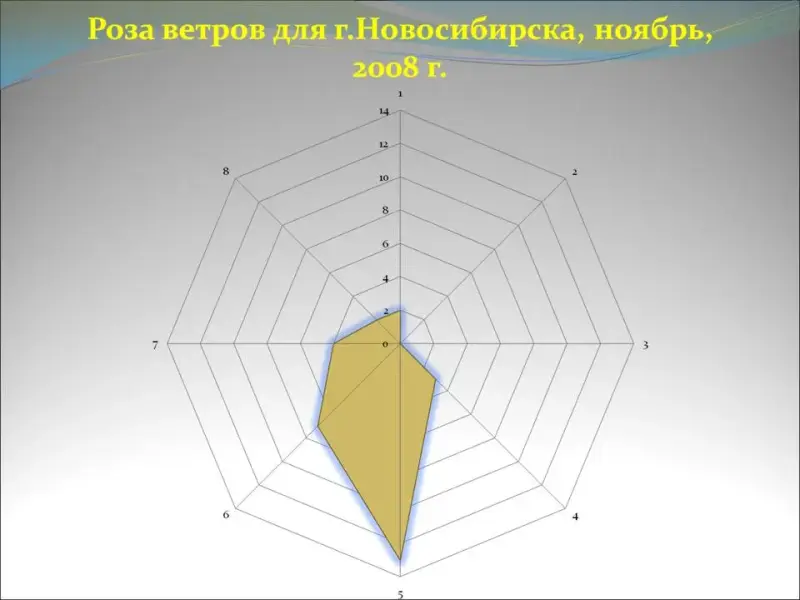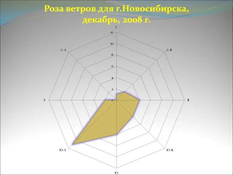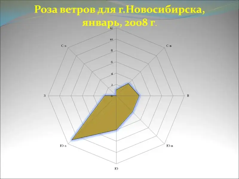 6. Построение диаграммы «Годовой розы ветров для города Новосибирска, январь, 2008г» (Презентация, слайд 40-44).