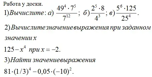 Урок алгебры по теме "Свойства степени с натуральным показателем". 7-й класс