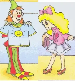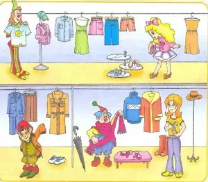 - Клоуны Тим и Том, Алиса, гном Тайни собираются в путешествие и поэтому отправились в магазин, чтобы купить все необходимое. Как вы думаете, сможем ли мы им помочь собрать с собой вещи в путешествие? - Нет, чтобы героям помочь собрать с собой вещи, нам нужно познакомиться с новыми словами. - Это и будет целью нашего урока, ознакомление с лексикой по теме "Покупка одежды". |