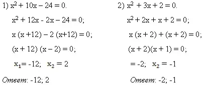 Решите квадратные уравнения, применяя метод "переброски".