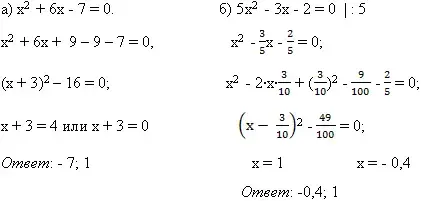 Решите квадратные уравнения, применяя метод выделения полного квадрата.