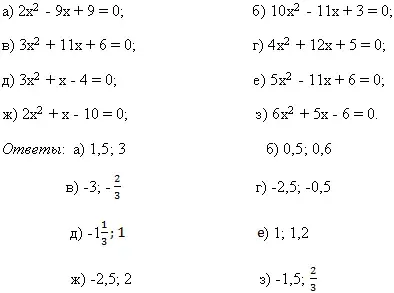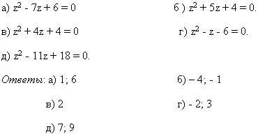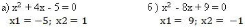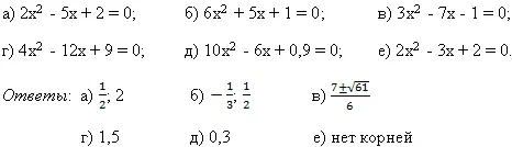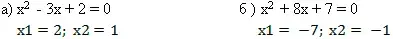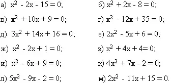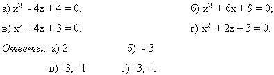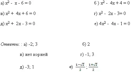 е) х2 - 4х + 4 = 0; и) х2 + 2х - 3 = 0. |