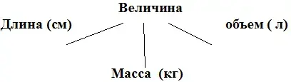 - Чем отличается понятие "длина" от "см"? (Длина - величина, свойство предмета; "см " - мерка, единица измерения.)