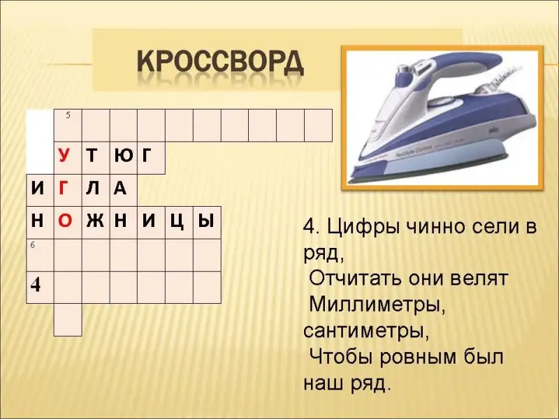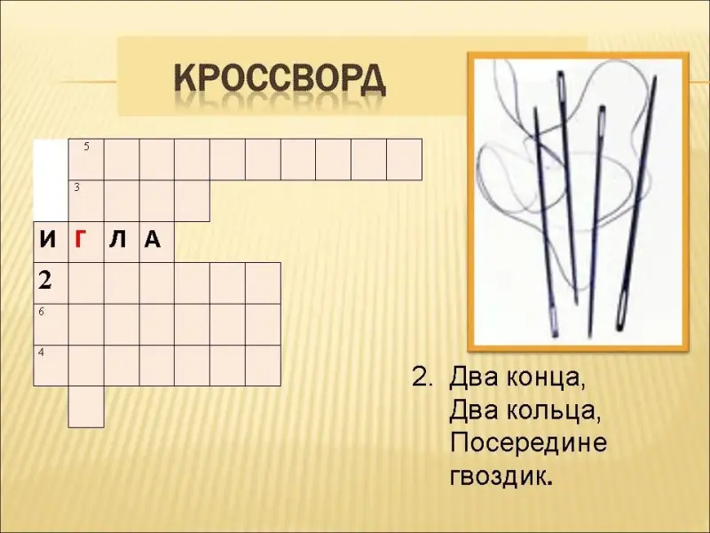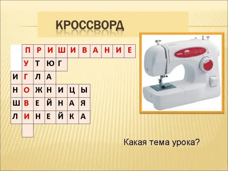 Когда кроссворд полностью отгадан, учитель показывает на слово по горизонтали, по вертикали, учащиеся читают тему урока "Пришивание пуговиц".