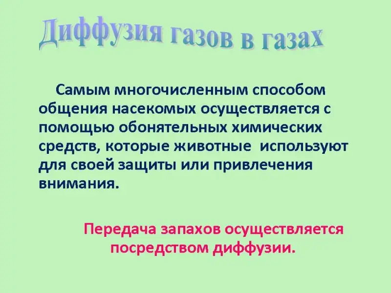 2) Сообщения учащихся о примерах проявления диффузии газов в газах и представление результатов своих наблюдений.
