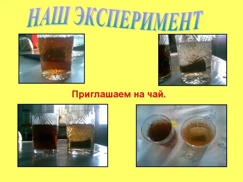 Кто из нас не заваривал чай? Мы решили сравнить скорость протекания диффузии при заваривании чая холодной и горячей водой. Процесс диффузии ускоряется с повышением температуры. Чай заваривается почти сразу в горячей воде. А вот в холодной - лишь не менее чем через сутки. При добавлении дольки лимона чай осветляется. Цвет чая коричневый только в нейтральной среде (в воде). Итак, процесс диффузии в жидкостях происходит медленнее, чем в газах.