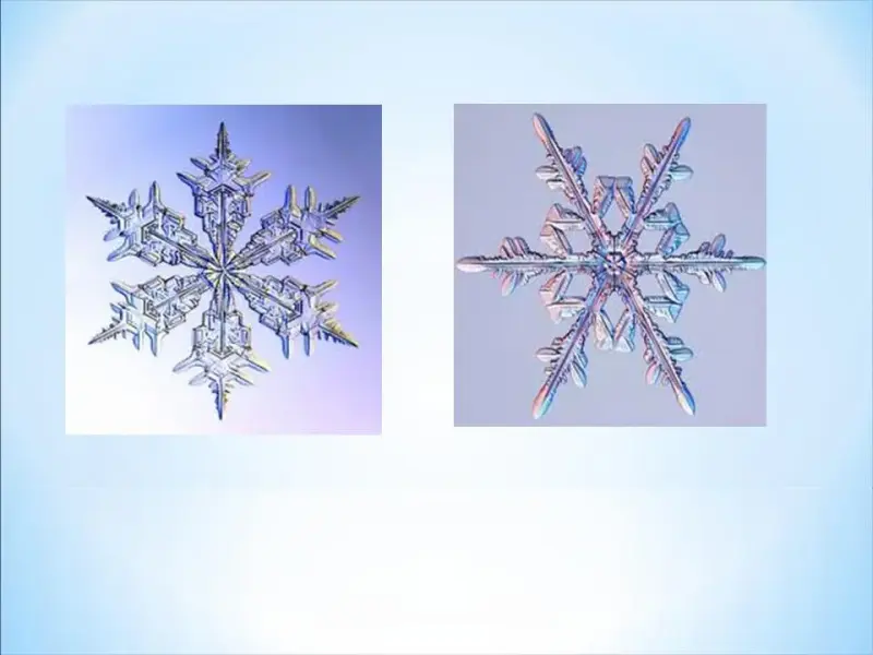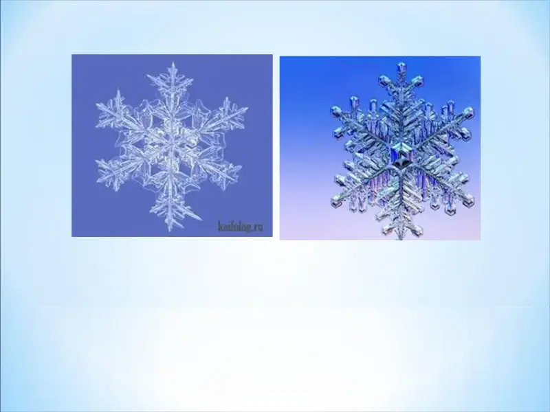 - Снежинки правильной формы имеют шесть лучей, граней. (Слайды 4-5)