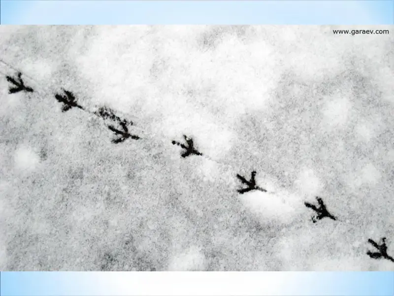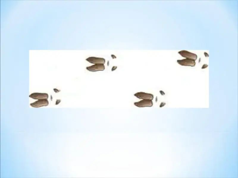 - Правильно, следы. Посмотрите, это следы волка, зайца, кабана, лося, белка, вороны. (Слайды 10-15)