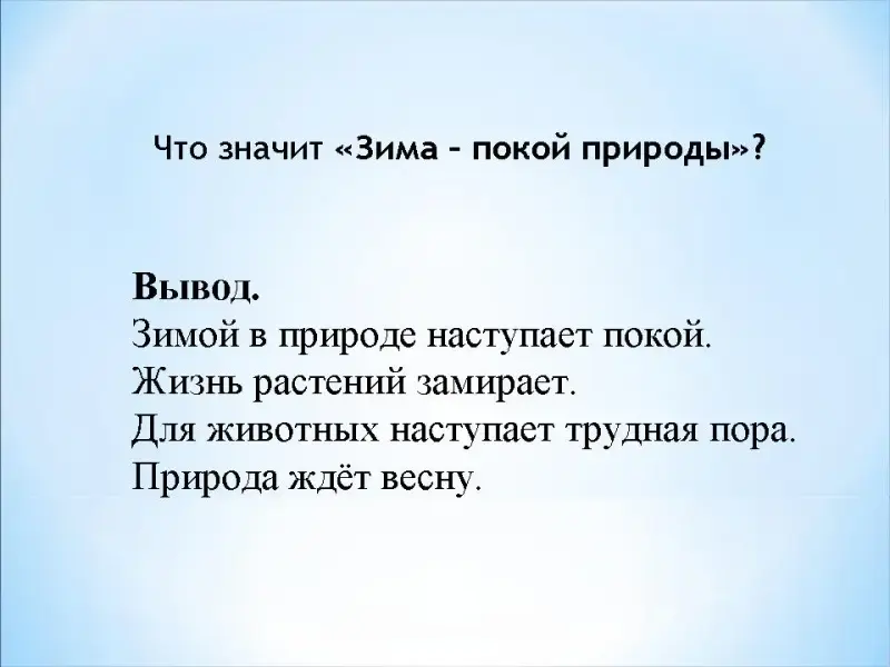 - Так почему же говорят, что "Зима - покой природы"? (Ответы детей.)