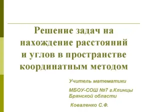 Решение задач на нахождение расстояний и углов в пространстве координатным методом