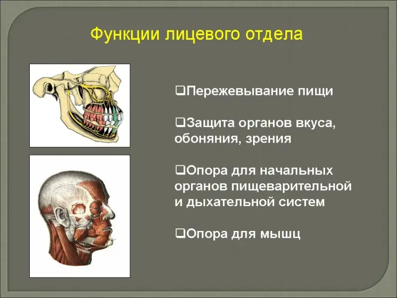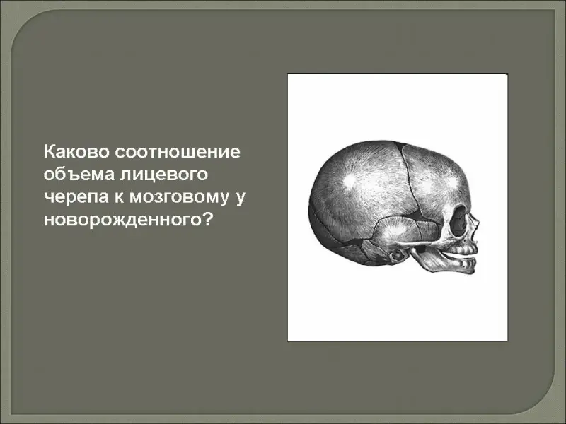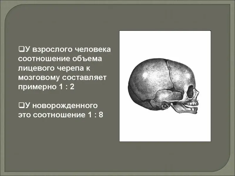 - Соотношение объема лицевого отдела черепа к мозговому отделу.