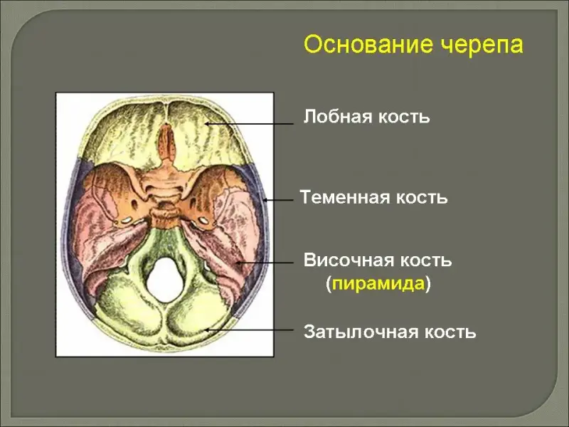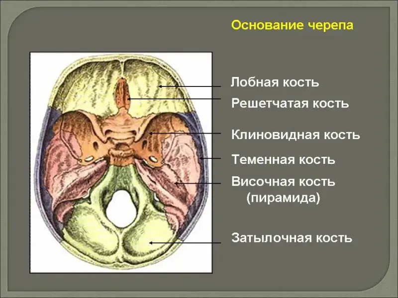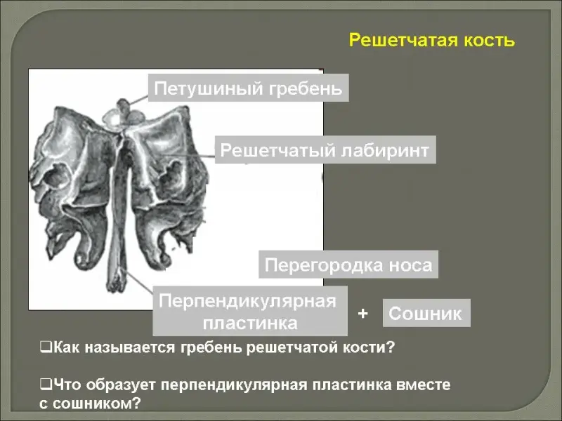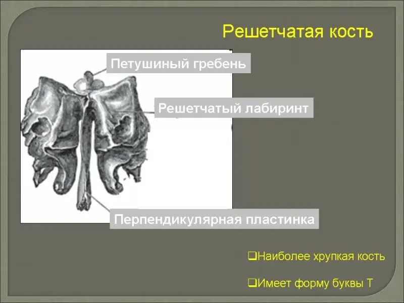 - Основная часть решетчатой кости образует основание черепа. Покажите на модели, где можно увидеть решетчатую кость.