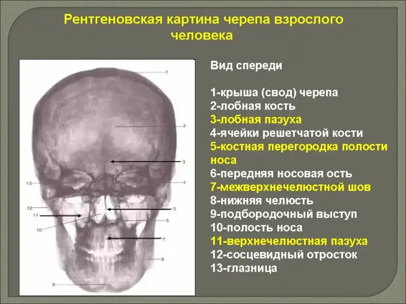 - Рентгенограмма черепа человека. Виды костей. Понятие "Пневматические кости".