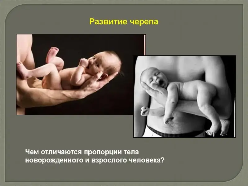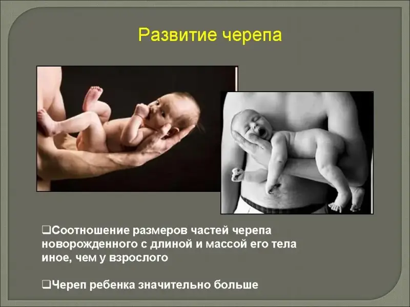 - Соотношение размеров частей черепа новорожденного с длиной и массой его тела.