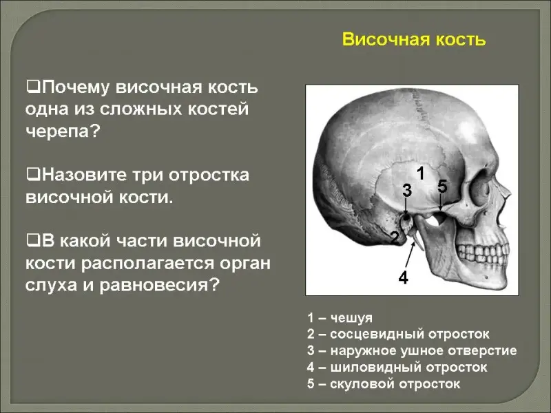 б) Обозначение костей черепа на рисунке (вид сбоку) [Приложение 4].