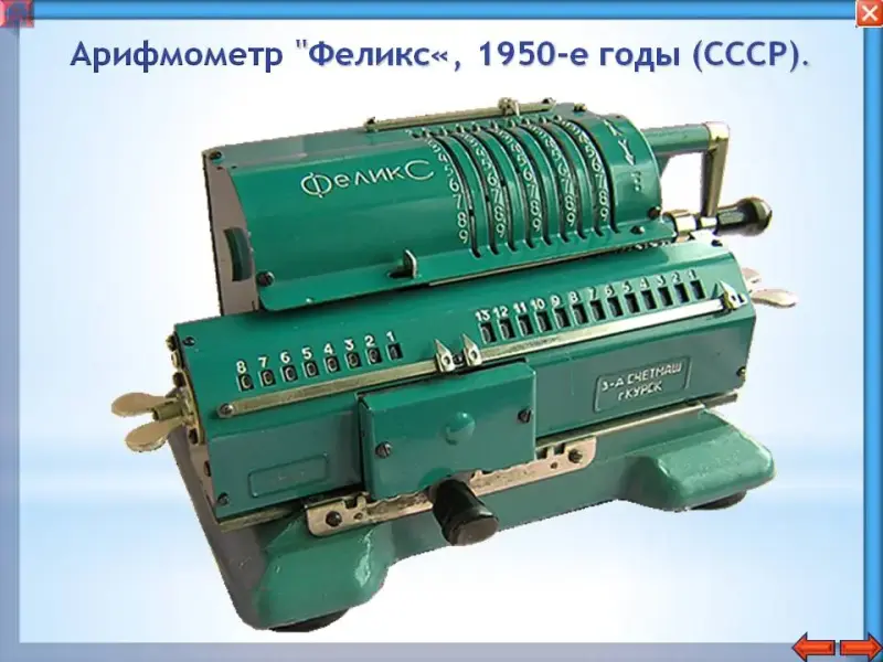 В 1642 году один из крупнейших ученых в истории человечества - французский математик, физик, философ и богослов Блез Паскаль изобрел и изготовил механическое устройство для складывания и вычитания чисел - АРИФМОМЕТР. ? Как вы думаете, из какого материала был сделан первый в истории арифмометр? (дерево).