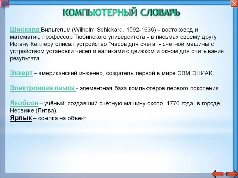 - познакомить с историей развития вычислительной техники, с устройствами, являющимися предшественниками компьютеров и их изобретателями
