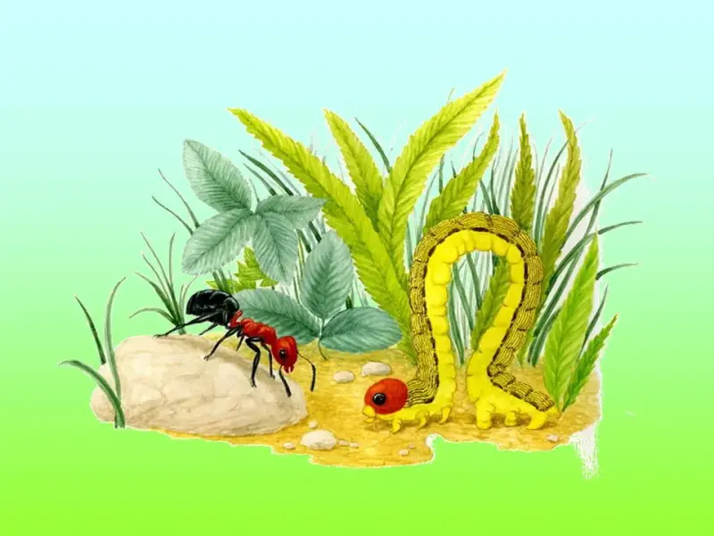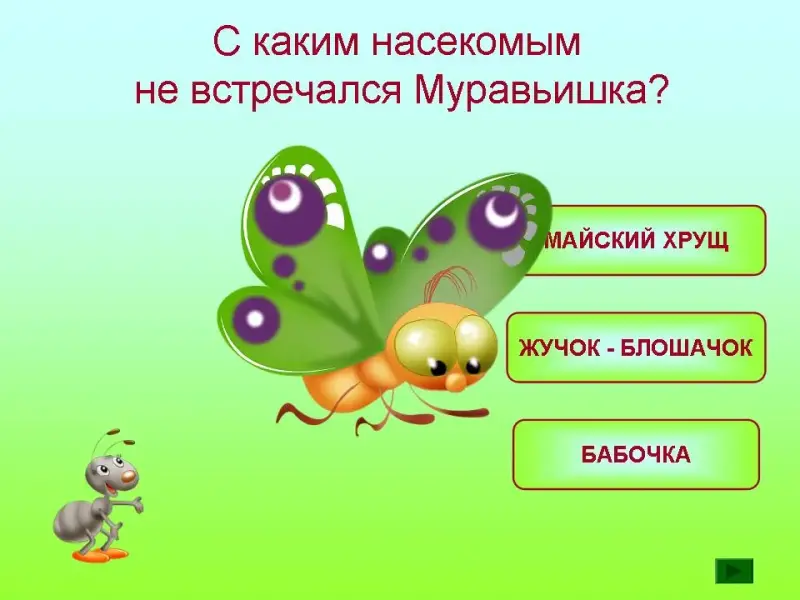 - Как на это отреагировал Муравьишка? (Укусил гусеницу).