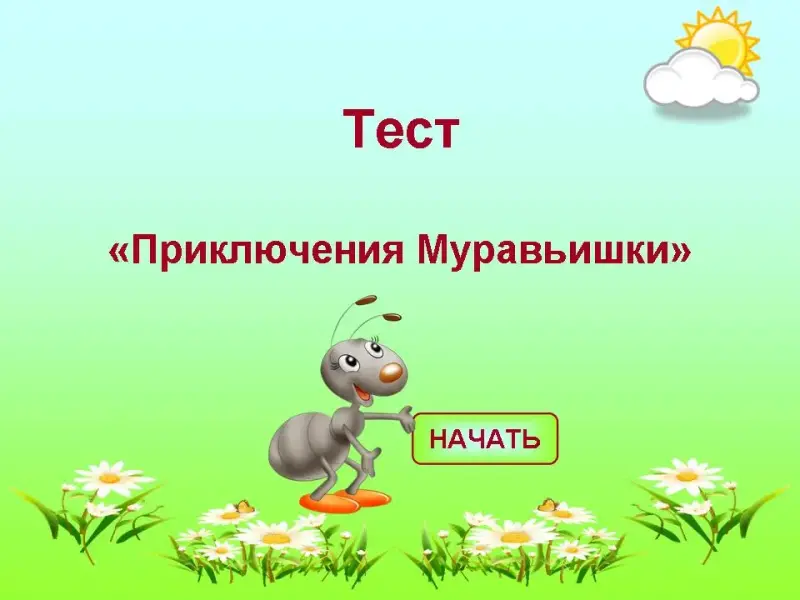 2) Работа в парах. ТЕСТ «Приключения Муравьишки» Приложение 4
