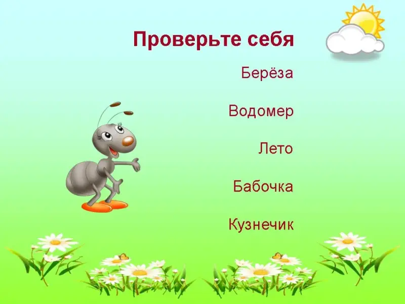 - Ребята, а по каким признакам вы догадались, что события происходят летом?