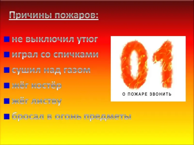 Журналист: Как хорошо, что ребята позвонили спасателям и назвали точные координаты. Давайте для наших телезрителей ещё раз напомним причины пожаров, может это спасёт кого-то от страшной беды.