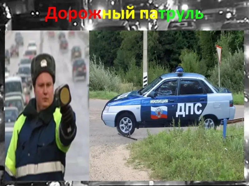 - Что делает дорожный патруль? Проверяет. (слайд 19).