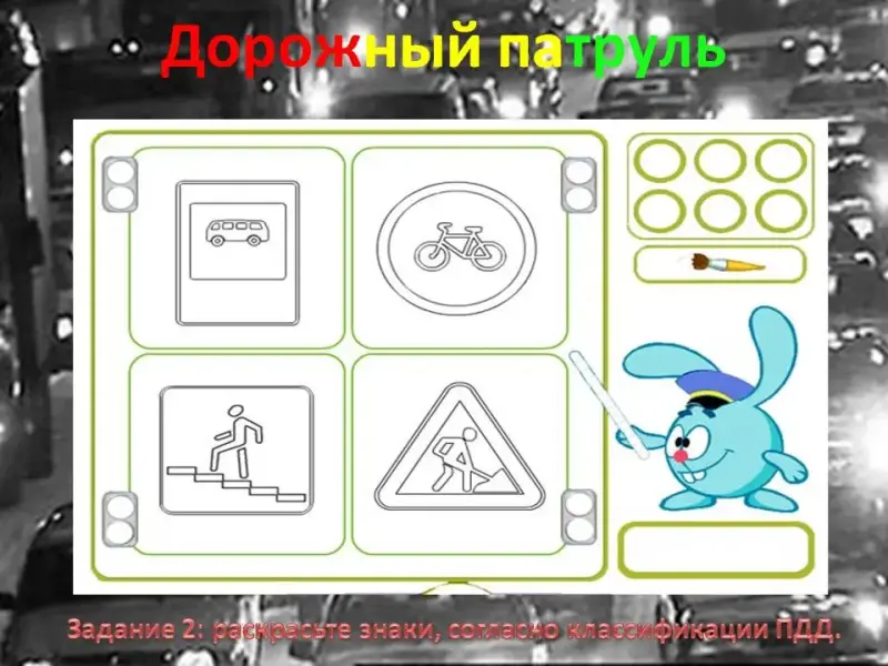- Самостоятельно раскрашенные дорожные знаки согласно классификации.