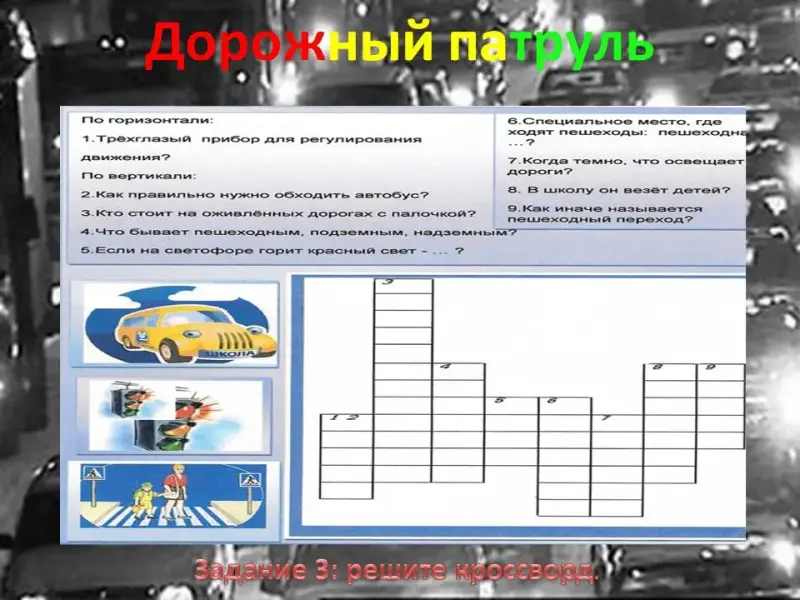 Задание 3-й группе: Вспомните правила дорожного движения и решите кроссворд. Вы можете составить свой кроссворд. (слайд 22)
