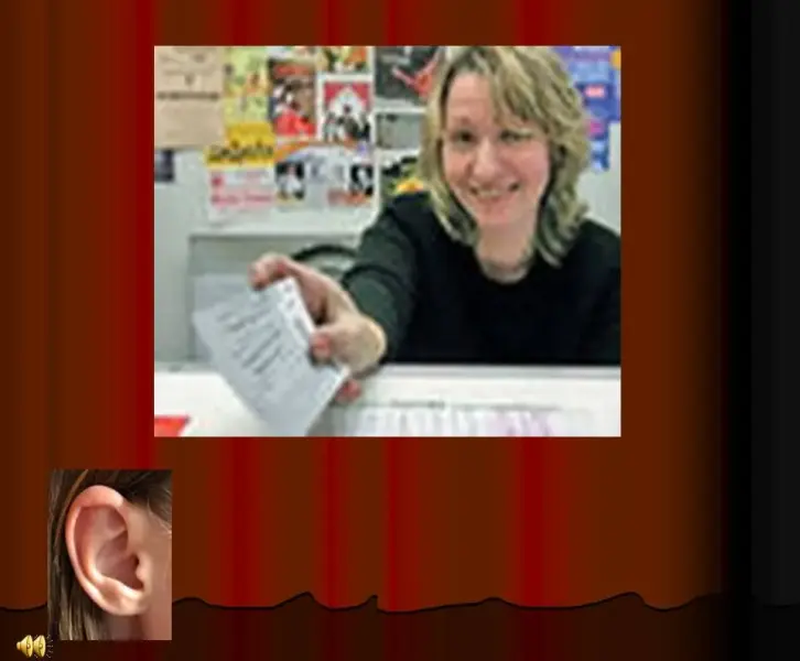 Учитель-логопед включает аудиозапись диалога зрителя с кассиром в презентации, слайд 12: