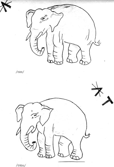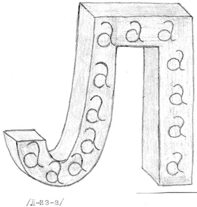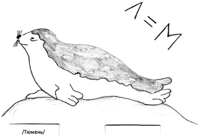 - Вторая буква ребусной азбуки - зачеркнутая буква. Зачеркнутая буква возле рисунка (чаще всего над ним) - указание, что эту букву из названия рисунка нужно исключить. С помощью запятой избавляются от крайних букв, с помощью же зачеркнутой буквы - от букв, стоящих где-то в середине слова. Если рядом с зачеркнутой буквой вписана другая, то ее следует поставить на место исключенной <Рисунок 2>. Часто заменяемую букву не перечеркивают, а соединяют знаком равенства с другой буквой, которую нужно поставить вместо ее <Рисунок 3>.