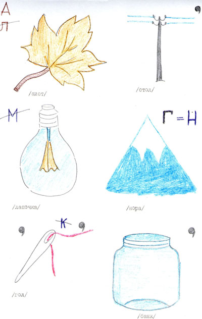 - Если рисунки (буквы) расположены один в другом, один за другим или один впереди, а другой за ним, то это указывает, что здесь нужно прибавить соответствующий предлог - в, на, за… <Рисунок 6>.