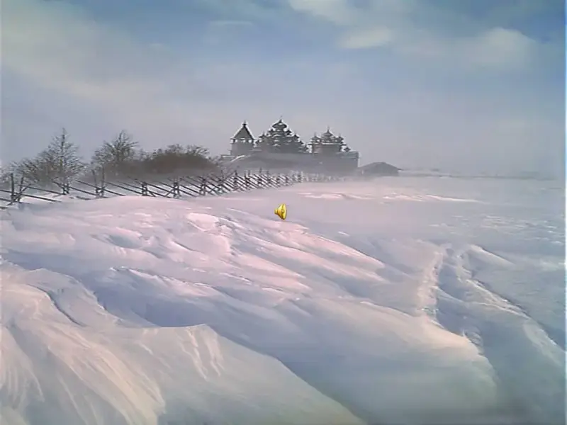 М. - Метель сделалась такая, что ничего не было видно. Небо слилось с землею, буря не утихала, а белые хлопья снега неслись нам навстречу, словно унося все мои надежды на близкое счастье. Показалась Жадринская церковь. Вскоре мы к ней подъехали.