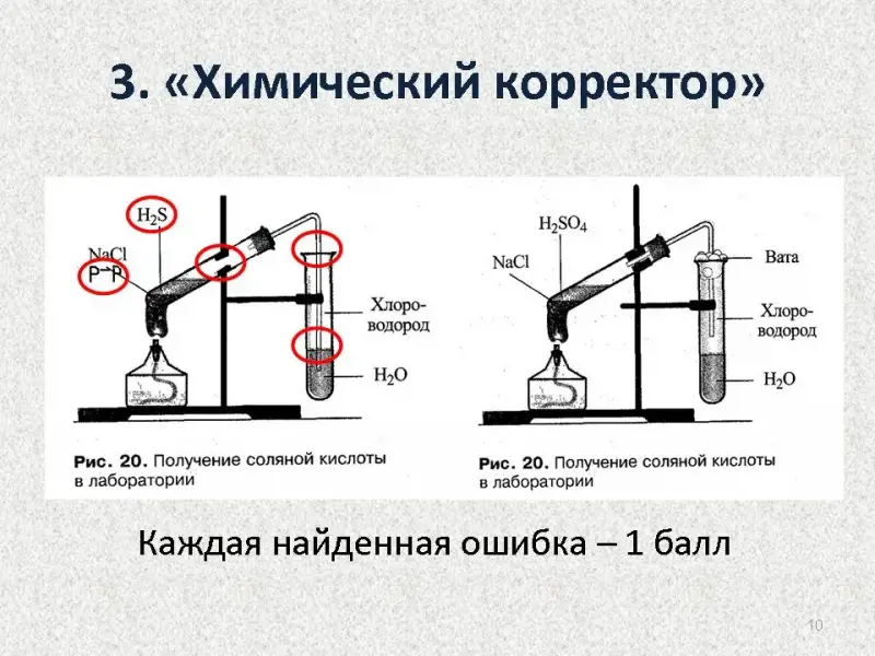Ошибки: (проверка - Слайд 10, после химической эстафеты)