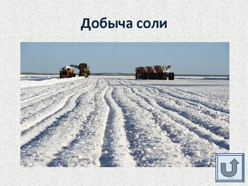 Добыча соли, которая раньше велась вручную, теперь механизирована. (Слайд 25)