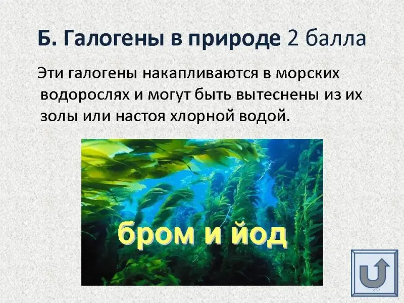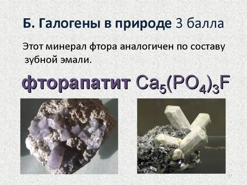 | Б. Галогены в природе | 1 | 2 | 3 |