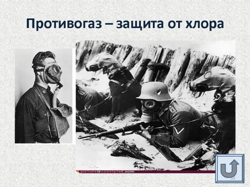 Дополнительный вопрос - как защититься от губительного действия хора? (1балл) Ответ - с помощью противогаза. (Слайд 34)