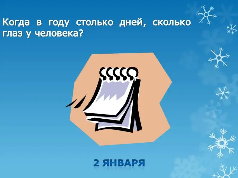 - Когда в году столько дней, сколько у человека глаз? (2 января)