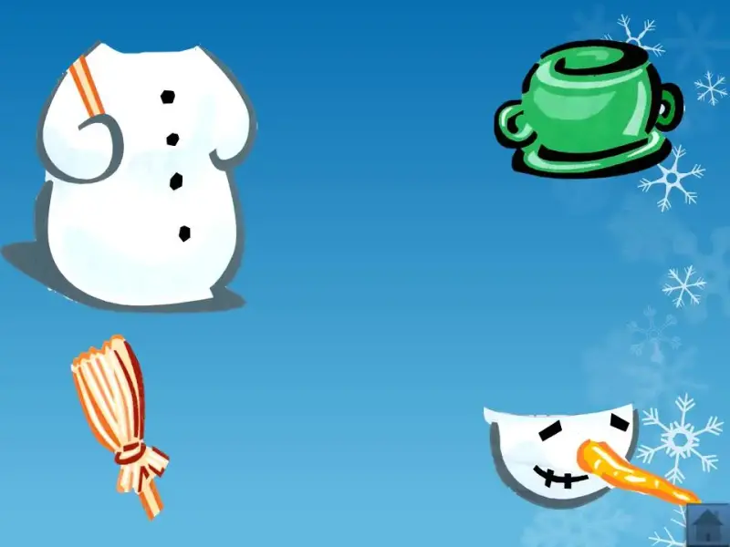На столе элементы - рисунки снеговиков (слайд 34). Собрав эти детали, участники получают фигуры снеговиков. Выигрывает команда, которая быстрее справится с заданием. На экране фигура снеговика.