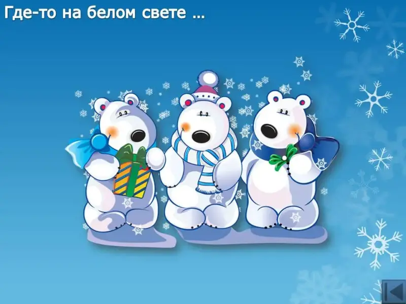 А сейчас конкурс песен о зиме. Команды поочередно выбирают номера песен и продолжают их (слайды 36-42).