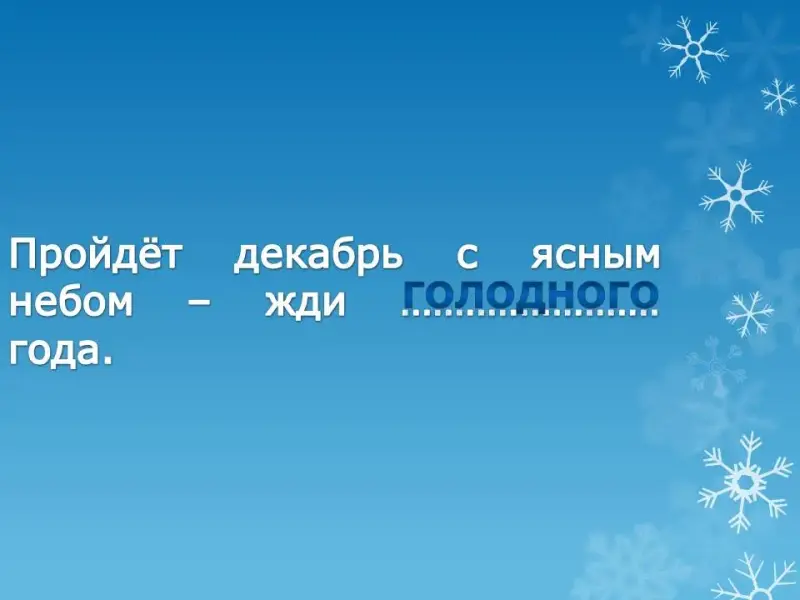 - Пройдет декабрь с ясным небом - жди … (голодного) года.