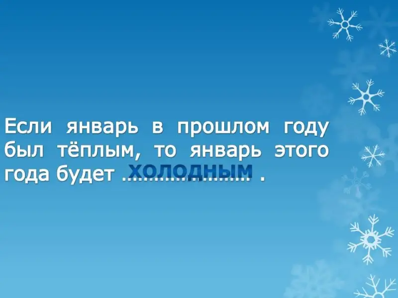 - Если январь в прошлом году был теплый, то январь этого года будет … (холодным).