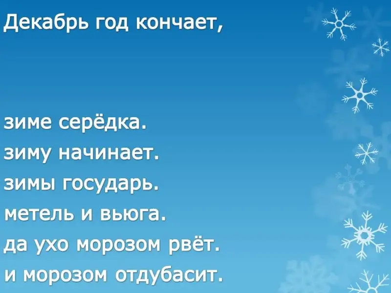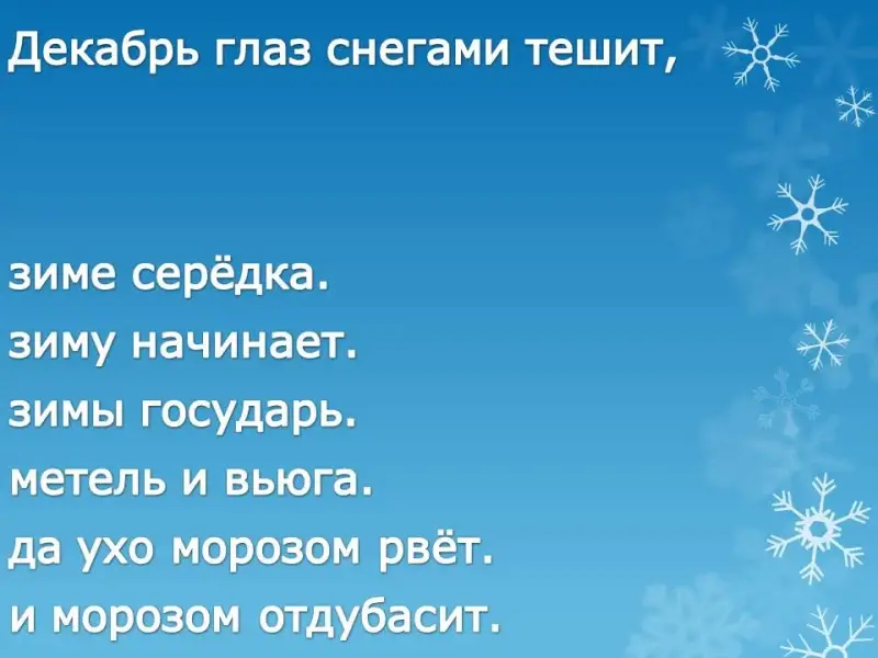 | Декабрь год кончает, … | … зиму начинает. |
