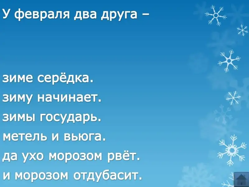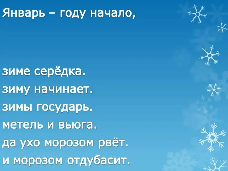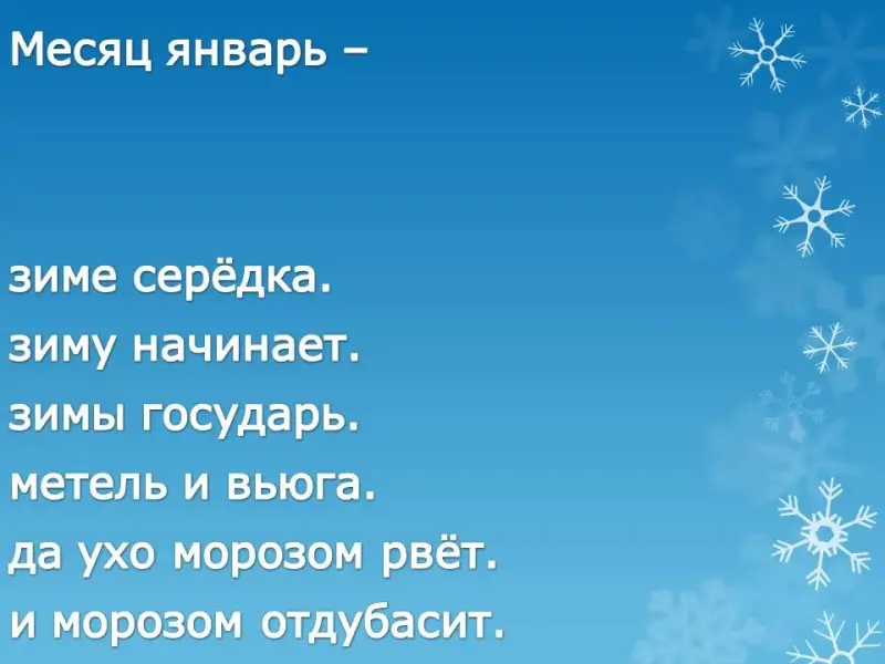 | Январь - году начало, … | … зиме середка. |