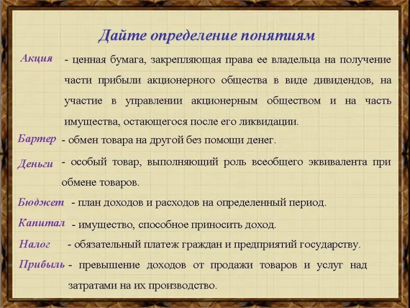 V. Дайте определение понятиям.