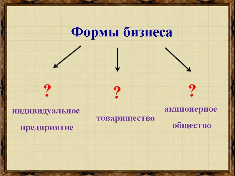 (Можно также спросить определение форм бизнеса).