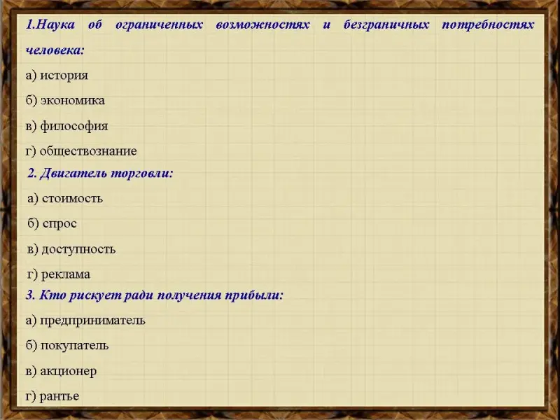 а) история б) экономика в) философия г) обществознание |